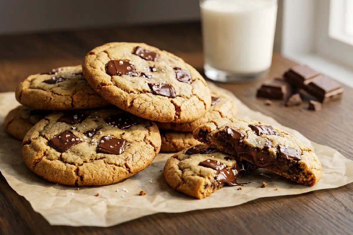 Aprenda a fazer cookies de chocolate com bordas crocantes, centro macio e levemente cremoso e pedaços generosos de chocolate derretido…