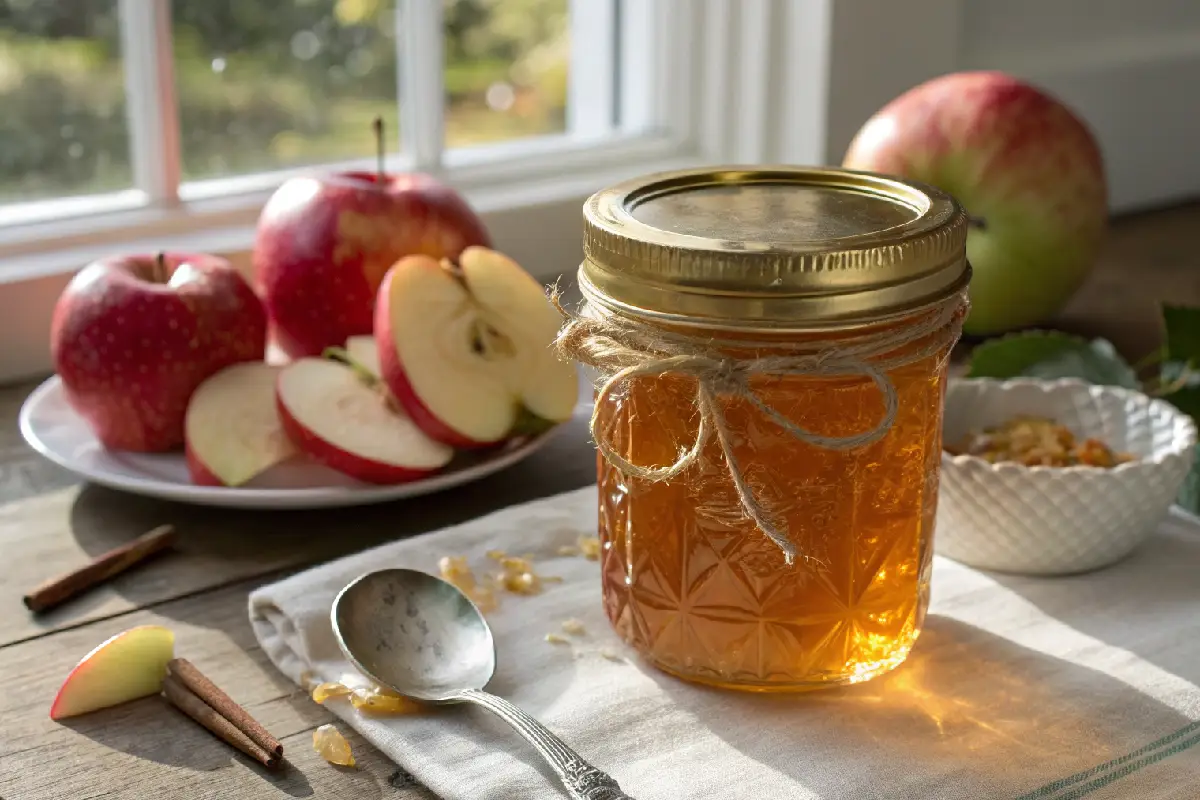Geleia de maçã caseira tradicional: textura brilhante perfeita, sabor natural intenso e aroma acolhedor irresistível