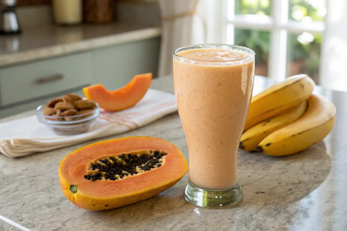 Vitamina de Mamão com Banana, refrescante e nutritiva para o café da manhã ou lanche.